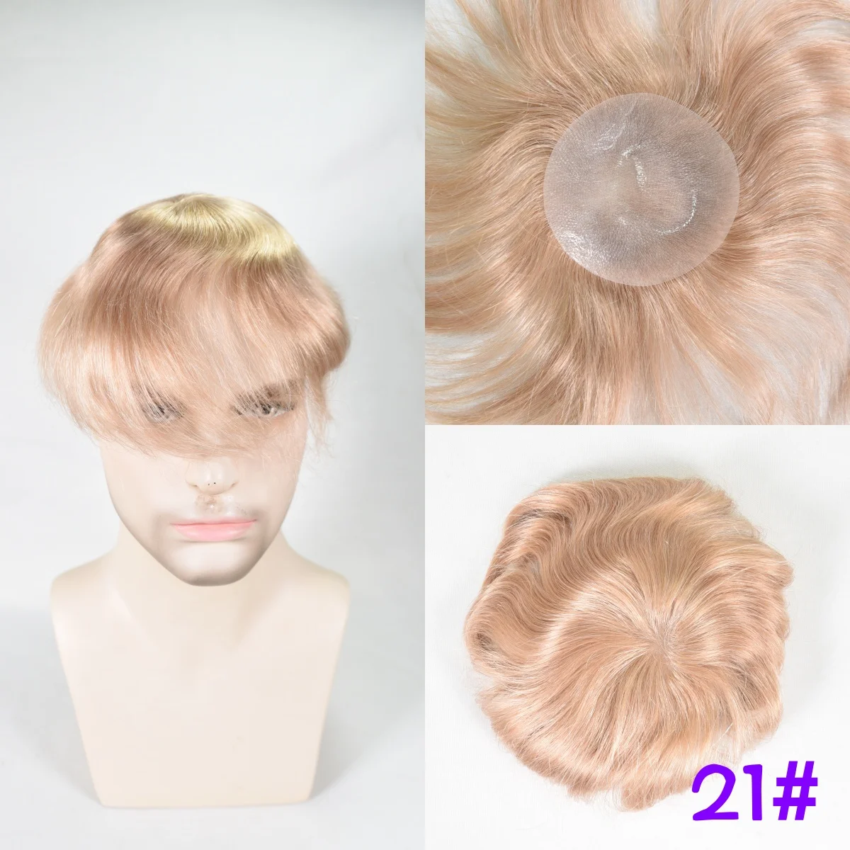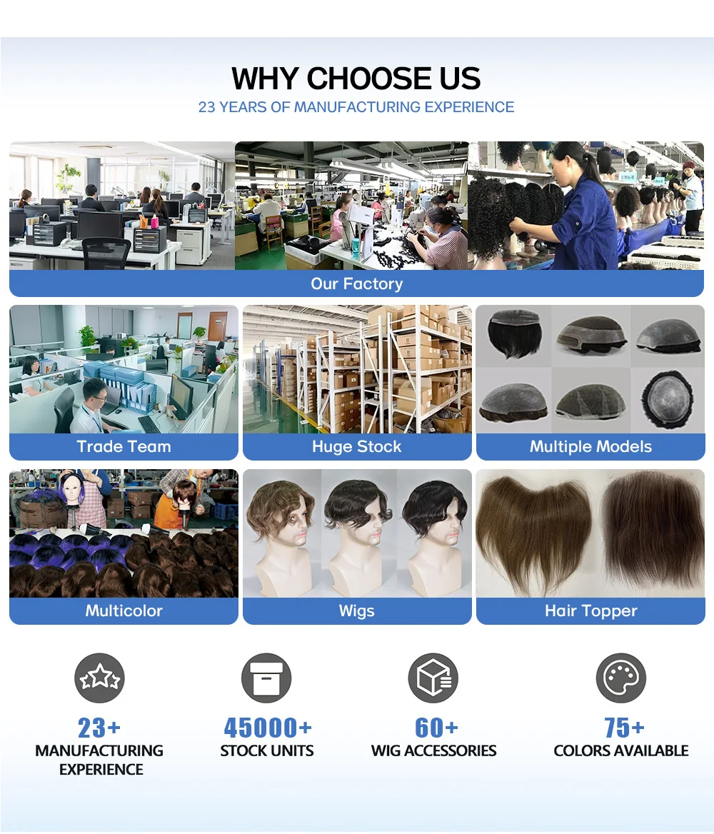 Skin hair system has the most natural hairline. The hair on the base is v-looped, so it is knot free, keeps the most authentic appearance, and is easy to clean and attach. It can be worn and cleaned at home. Because it is very thin, it has low density of bearing hair, so it is very light.