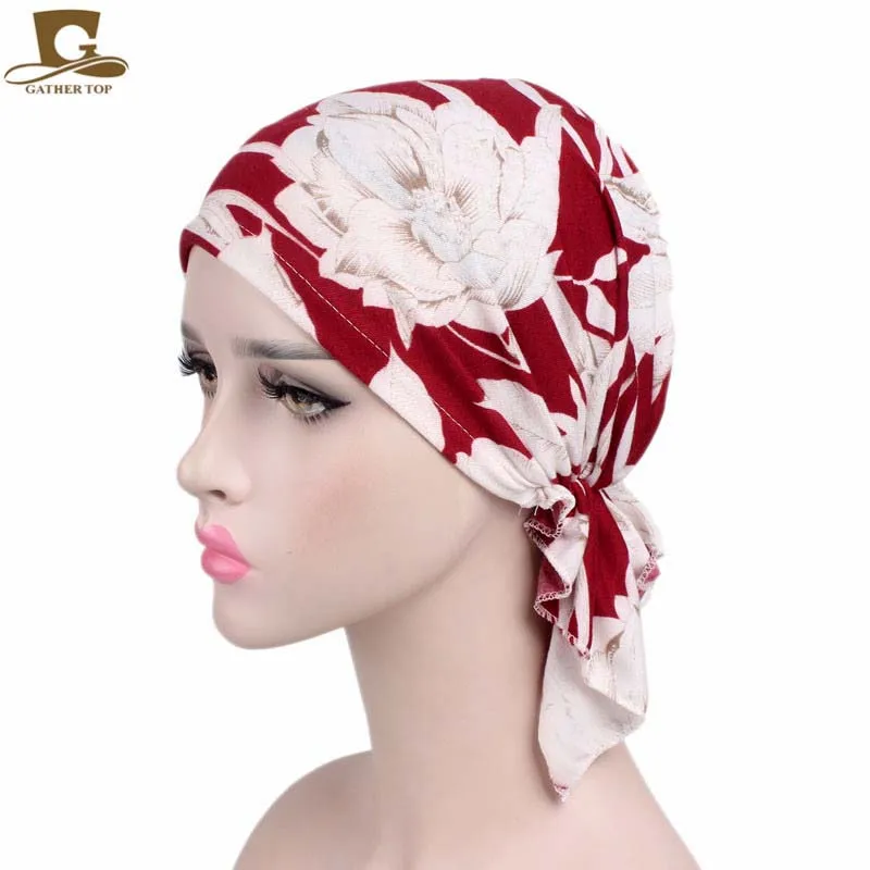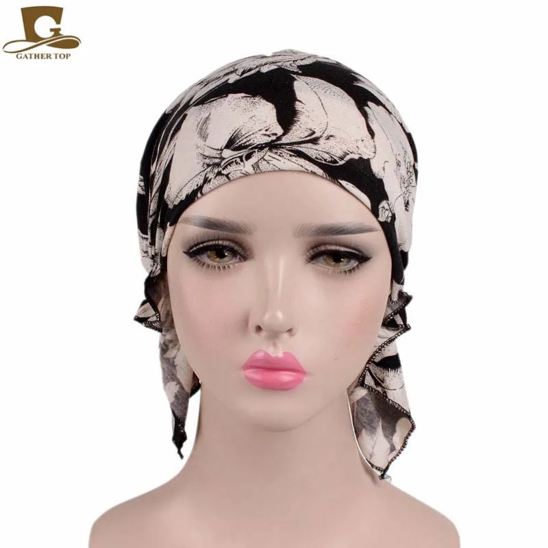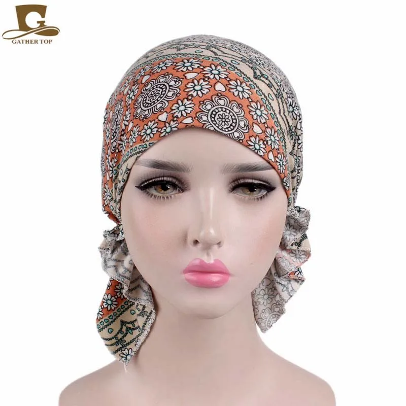 New stretchy cotton Pre Tied Scarf Head Scarf Chemo hat Cancer Scarves