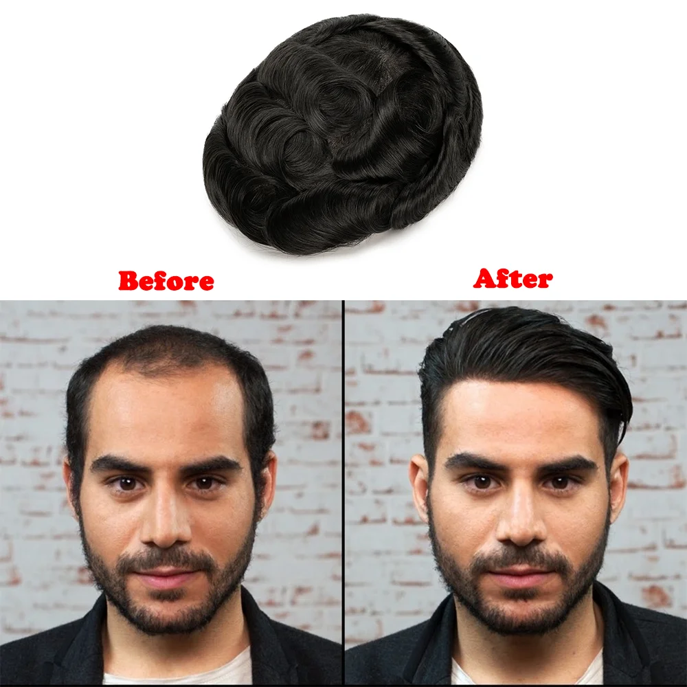 Toupee for Men Human Hair Replacement System Natural Black Hair Prosthesis Men Toupee 0.08mm Double Knots Indian Human Wig